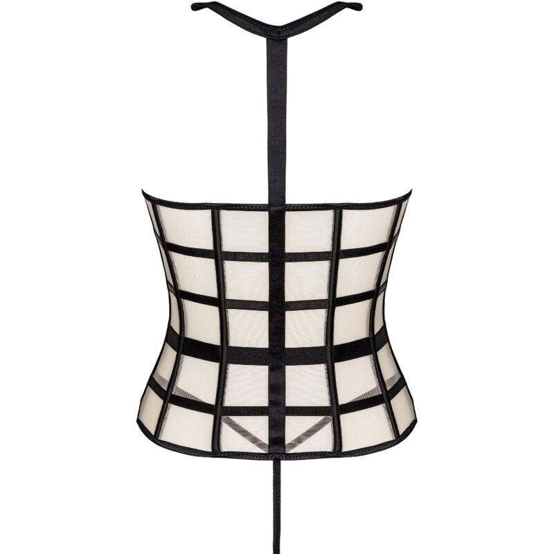 Un set in due pezzi composto da un corsetto sensuale e prosperoso e un sexy perizoma nero. Il corsetto ha una cerniera nella parte anteriore, che lo rende facile da indossare. I colori del set sono il nero e il beige, che insieme creano una combinazione attraente. Vale anche la pena prestare attenzione ai dettagli allettanti come un colletto nero o cinture nere disposte in modo tale da evidenziare al meglio la vita. Ciò che spicca di più in questo corsetto sono i ritagli che espongono il seno. Ciò rende l’intero set molto audace e provocante. Non è lasciato molto all’immaginazione. Gli adesivi per capezzoli saranno una grande aggiunta al gioco e aggiungeranno un po’ di pepe.