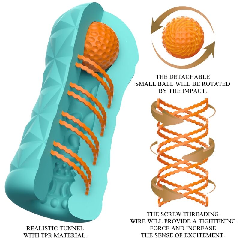 Piccolo strumento per un divertimento gigantesco con la masturbazione! Questo masturbatore trasparente e riutilizzabile ha una spirale rotante e una sfera di stimolazione sul lato, la spirale rotante fa ruotare il masturbatore durante la penetrazione e la sfera sulla parte superiore può stimolare il punto giusto e darti una nuova sensazione. La guaina ha al suo interno una texture stimolante ed eccitante che massaggia intensamente e dinamicamente il pene durante il lavoro manuale. Puoi usare questo elegante masturbatore delicato sulla pelle ancora e ancora. Molto facile da usare e puro piacere!